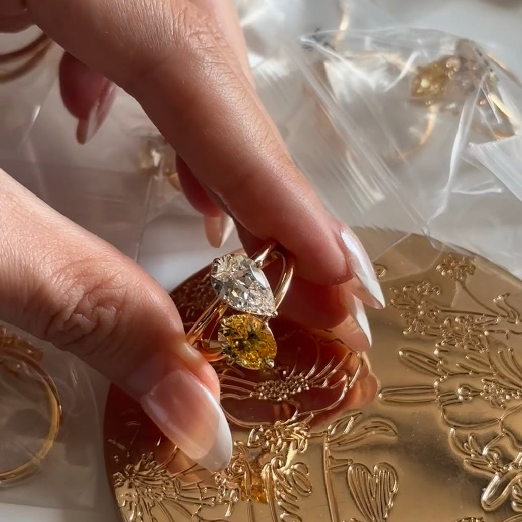 Inspirado na energia solar e na sorte dourada, o Anel Solaris Dual une duas forças poderosas: o brilho quente do citrino, pedra da prosperidade e fortuna, e o reluzir puro do cristal transparente, símbolo de clareza e proteção.