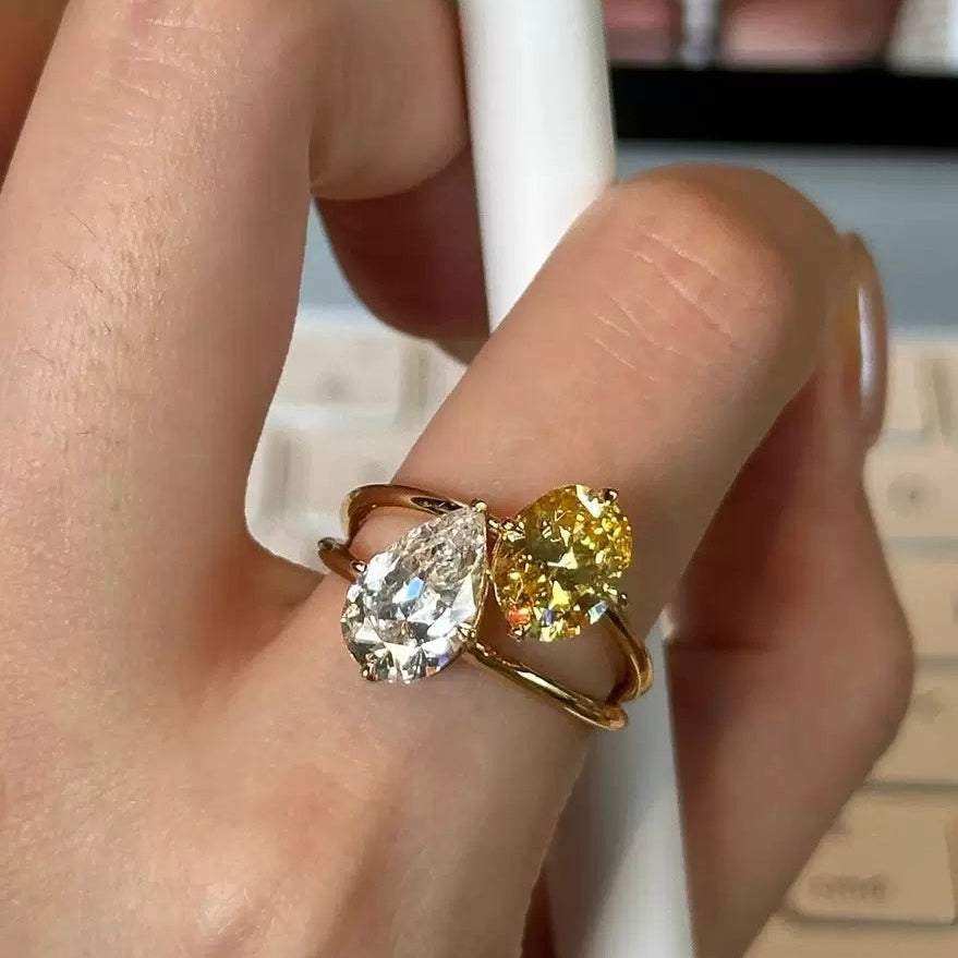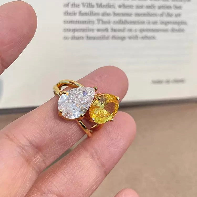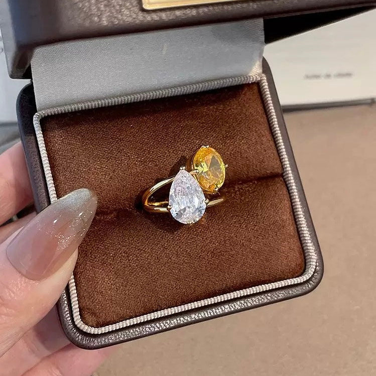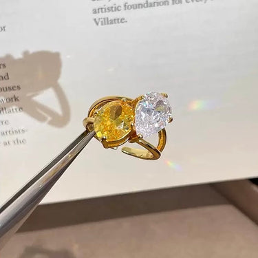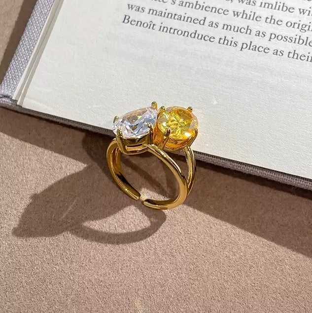 Anel Solaris Dual - Citrino & Luz - Banhado ao ouro 18k Ajustavel (Desconto pre-venda, envio a partir de 05/11))