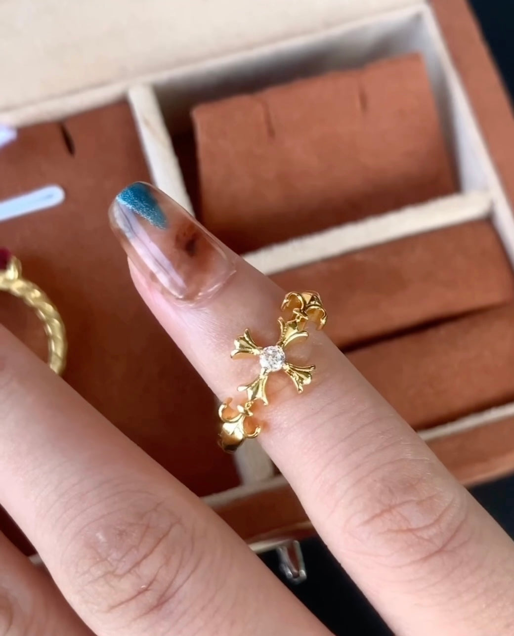 Anel Cruz Dourada da Luz Interior Banhado a ouro 18k Ajustável
