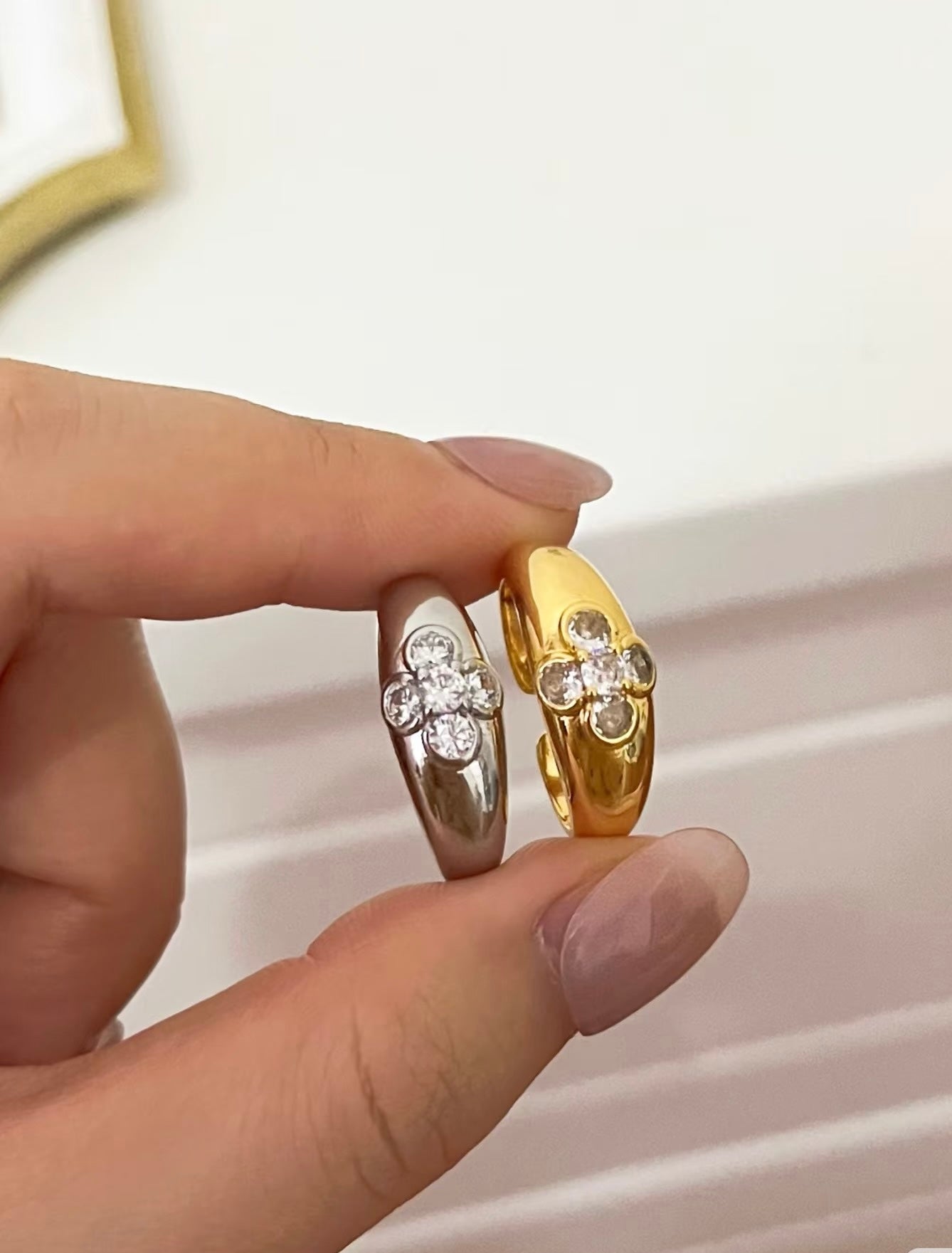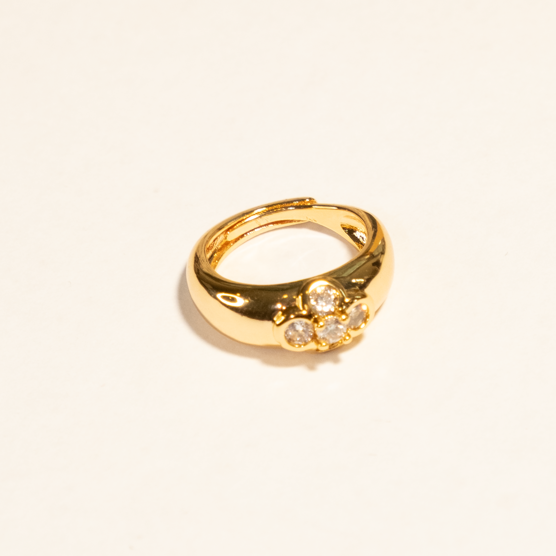 Anel Trevo da Sorte com Diamante (Zircônia) Banhado a ouro 18k Ajustável